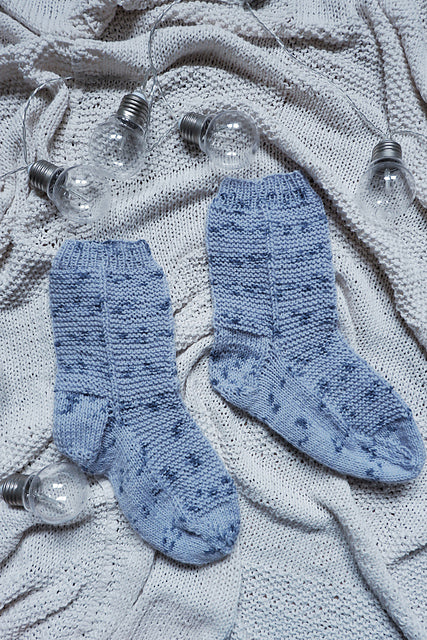 I November Fog sono semplici calzini da indossare con gli stivali o in casa per tenere i piedi caldi e colorati. Sono lavorati in tondo, dalla costa alla punta, lavorando il tallone in piano.