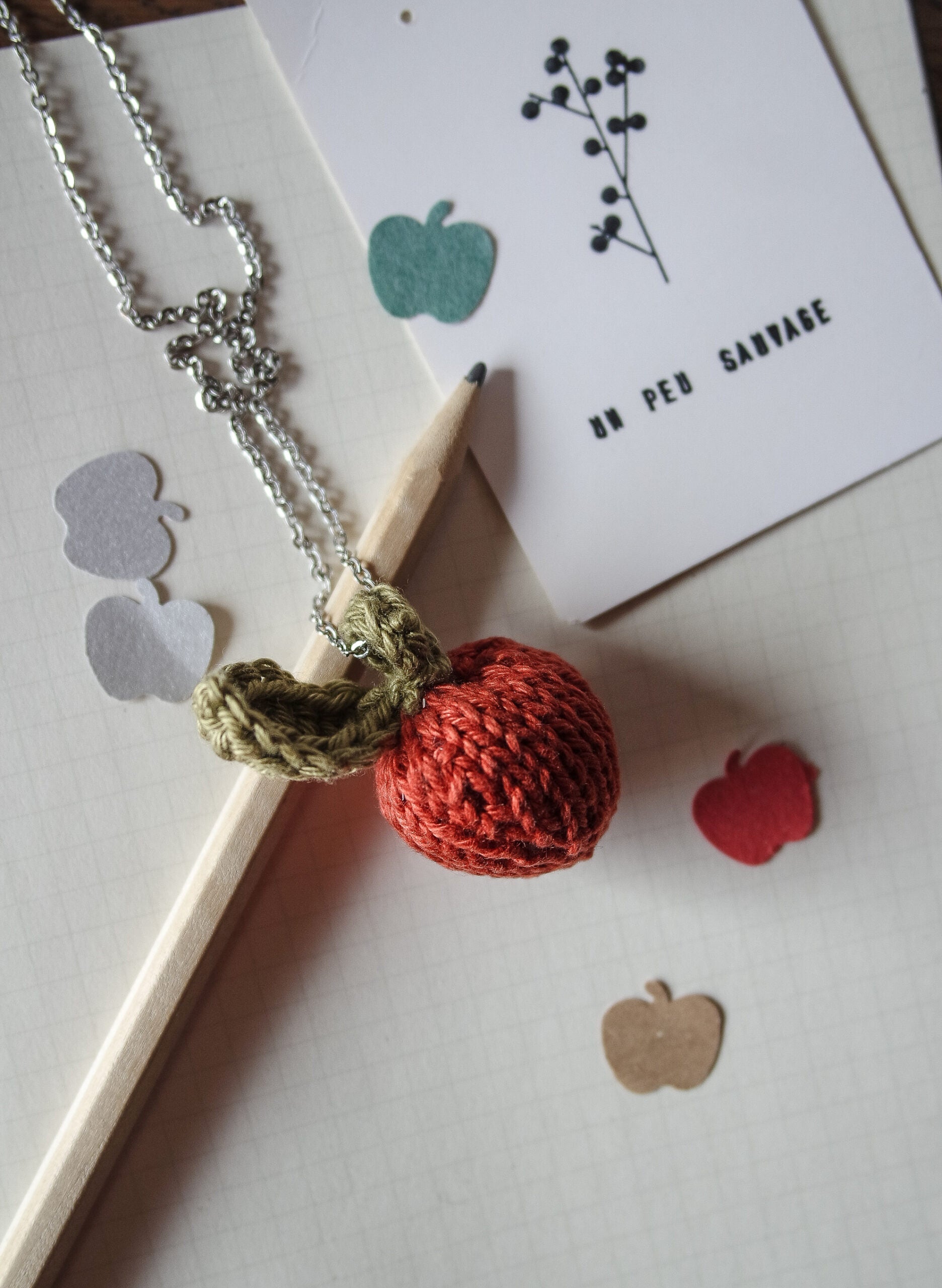 Misure: lunghezza circa 5 cm larghezza nel punto più grande 4 cm spessore: 3 cm lunghezza della catena circa 25 cm. Le mele sono tutte fatte a mano e potrebbero differire leggermente dalla foto originale.