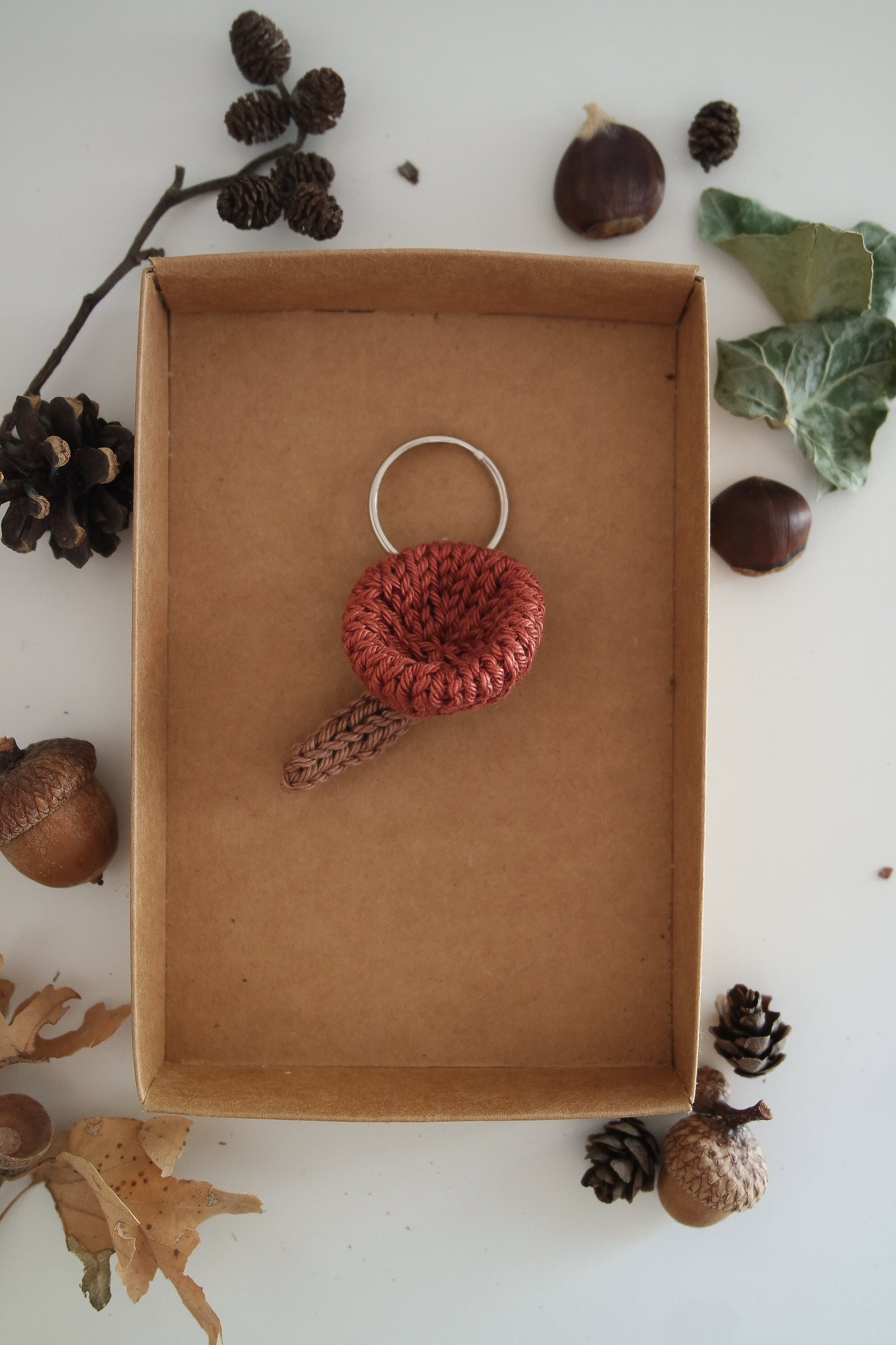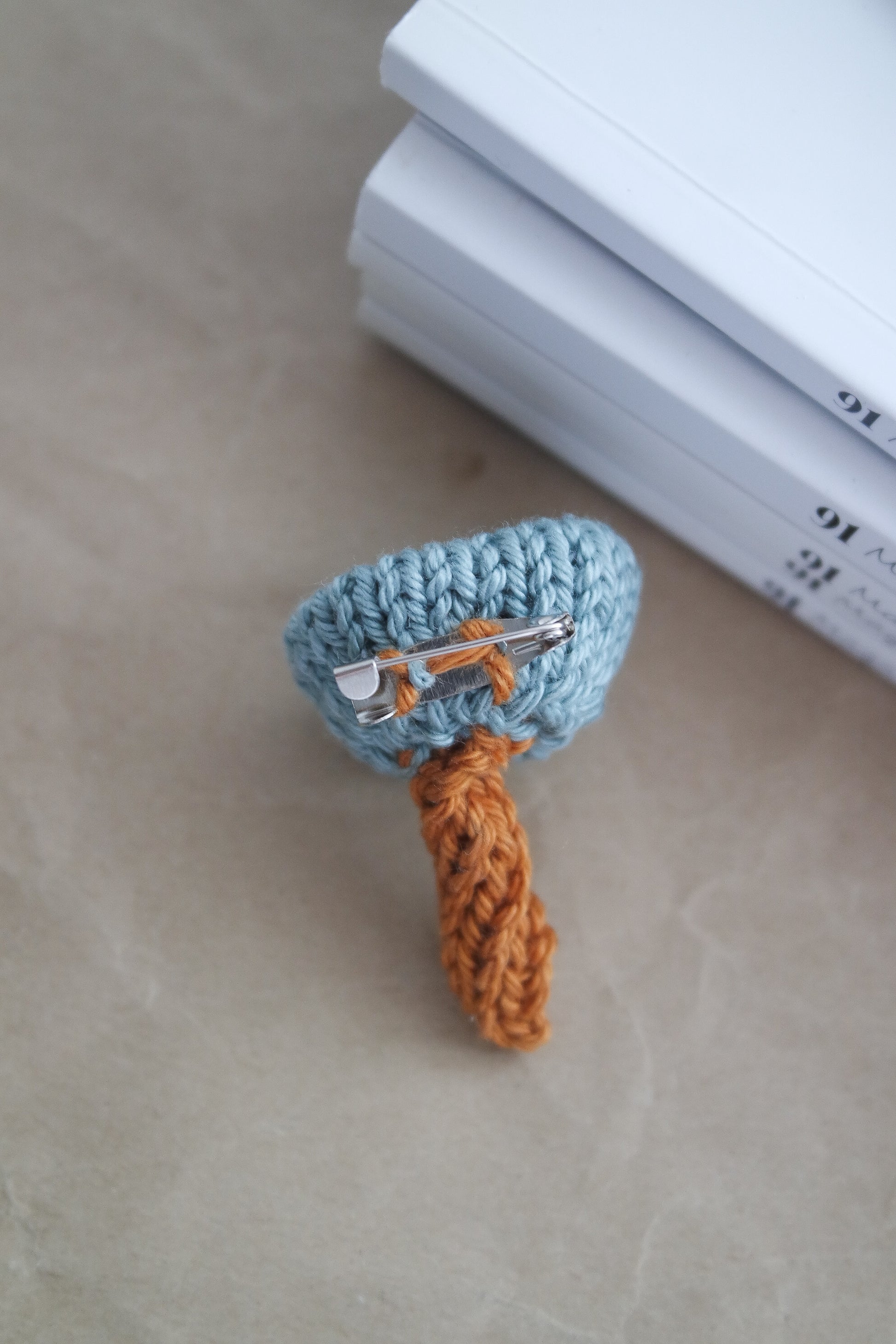 Spille a forma di fungo realizzate a maglia in cotone di diversi colori.