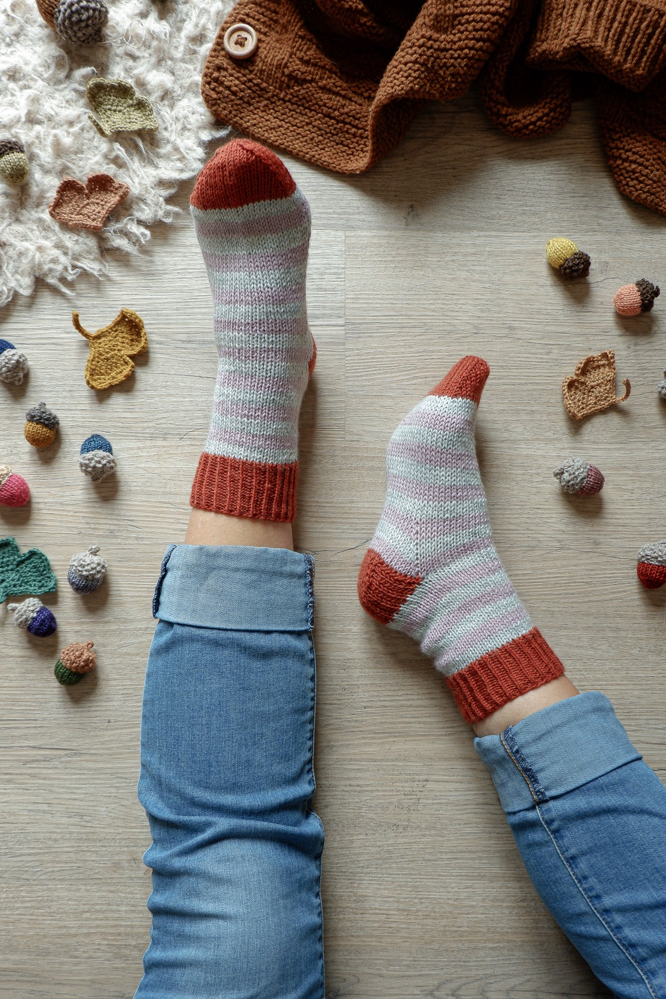Le Calzette a righe sono una via di mezzo tra calze e calzettoni. In particolare, queste sono realizzate a mano e ognuna è un po’ diversa dall’altra, può succedere anche nella stessa coppia di calze. Si differenziano per colori, ma anche per motivo.