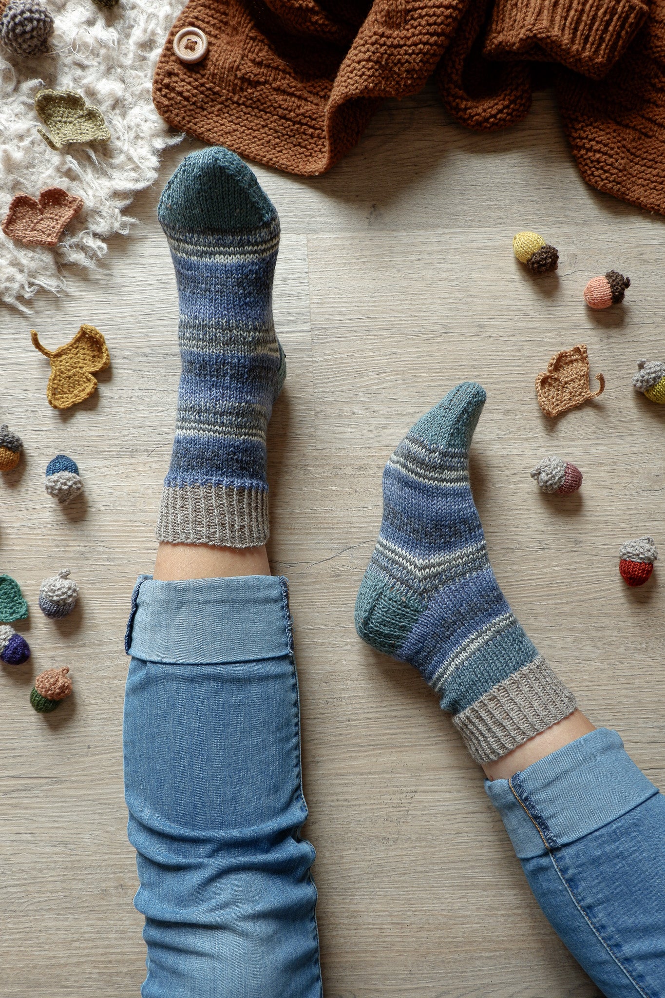 Le Calzette Fantasia sono una via di mezzo tra calze e calzettoni. In particolare, queste sono realizzate a mano e ognuna è un po’ diversa dall’altra, può succedere anche nella stessa coppia di calze. Si differenziano per colori, ma anche per motivo.
