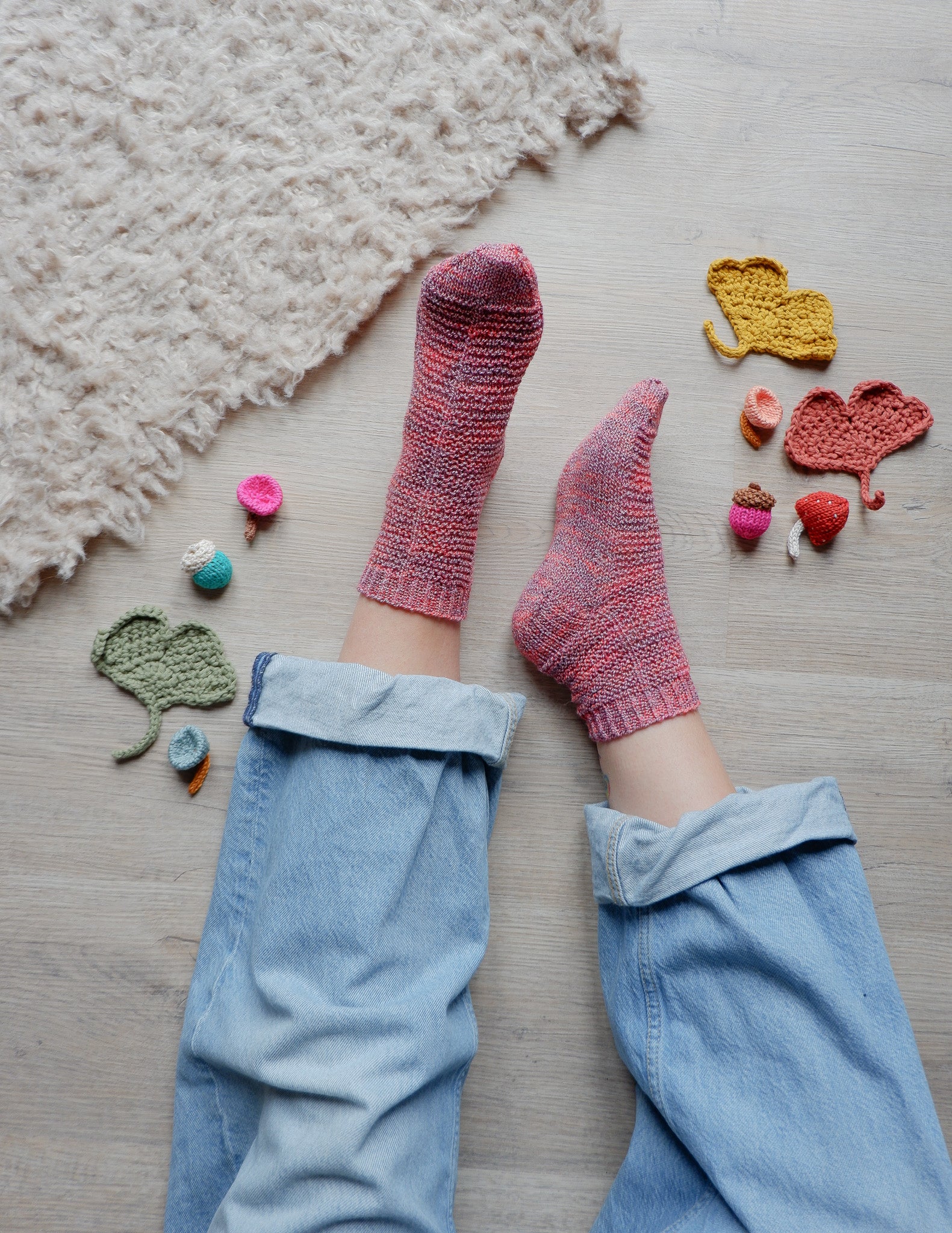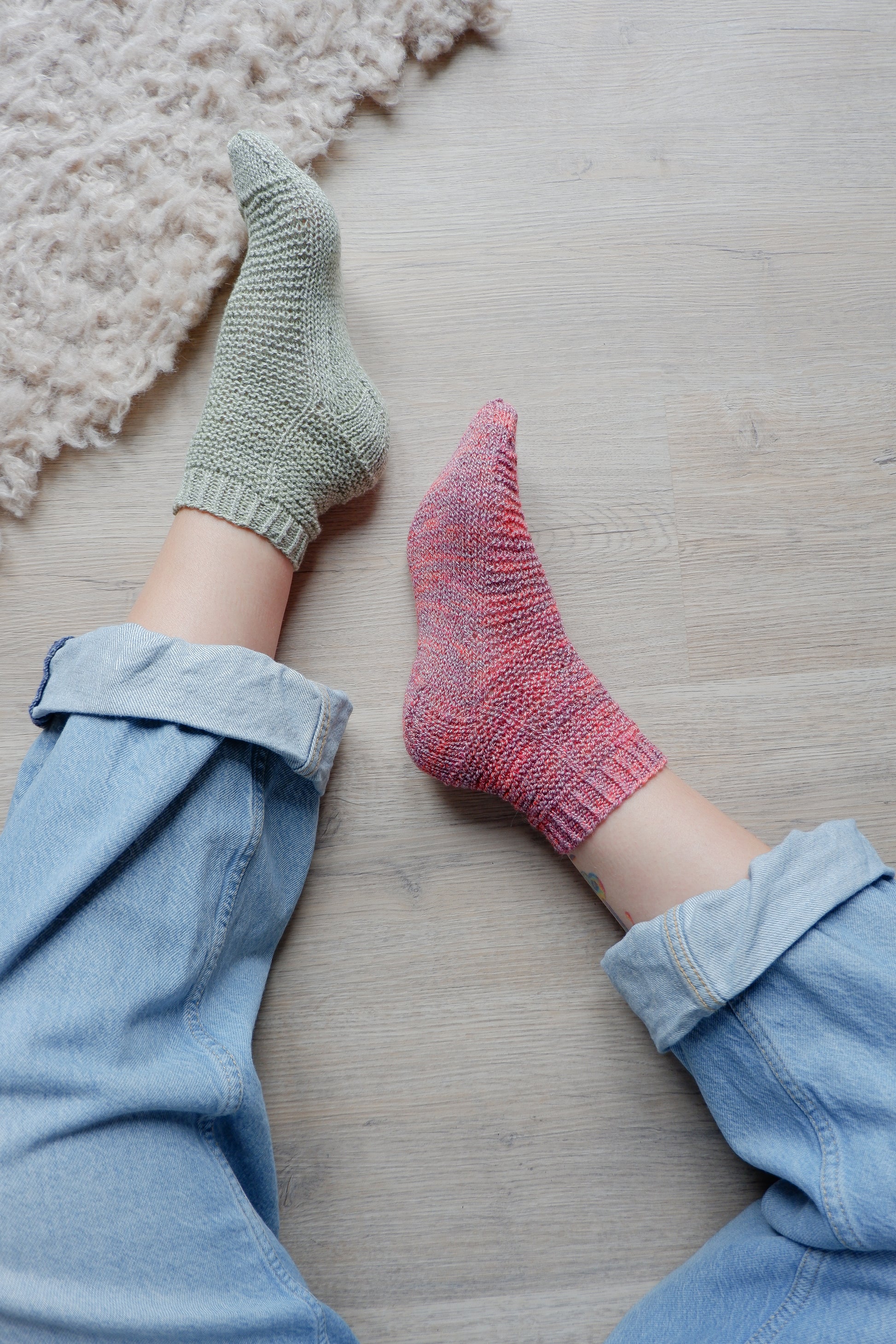 Le Calzette sono una via di mezzo tra calze e calzettoni. In particolare, queste sono realizzate a mano e ognuna è un po’ diversa dall’altra, può succedere anche nella stessa coppia di calze. Si differenziano per colori, ma anche per motivo.