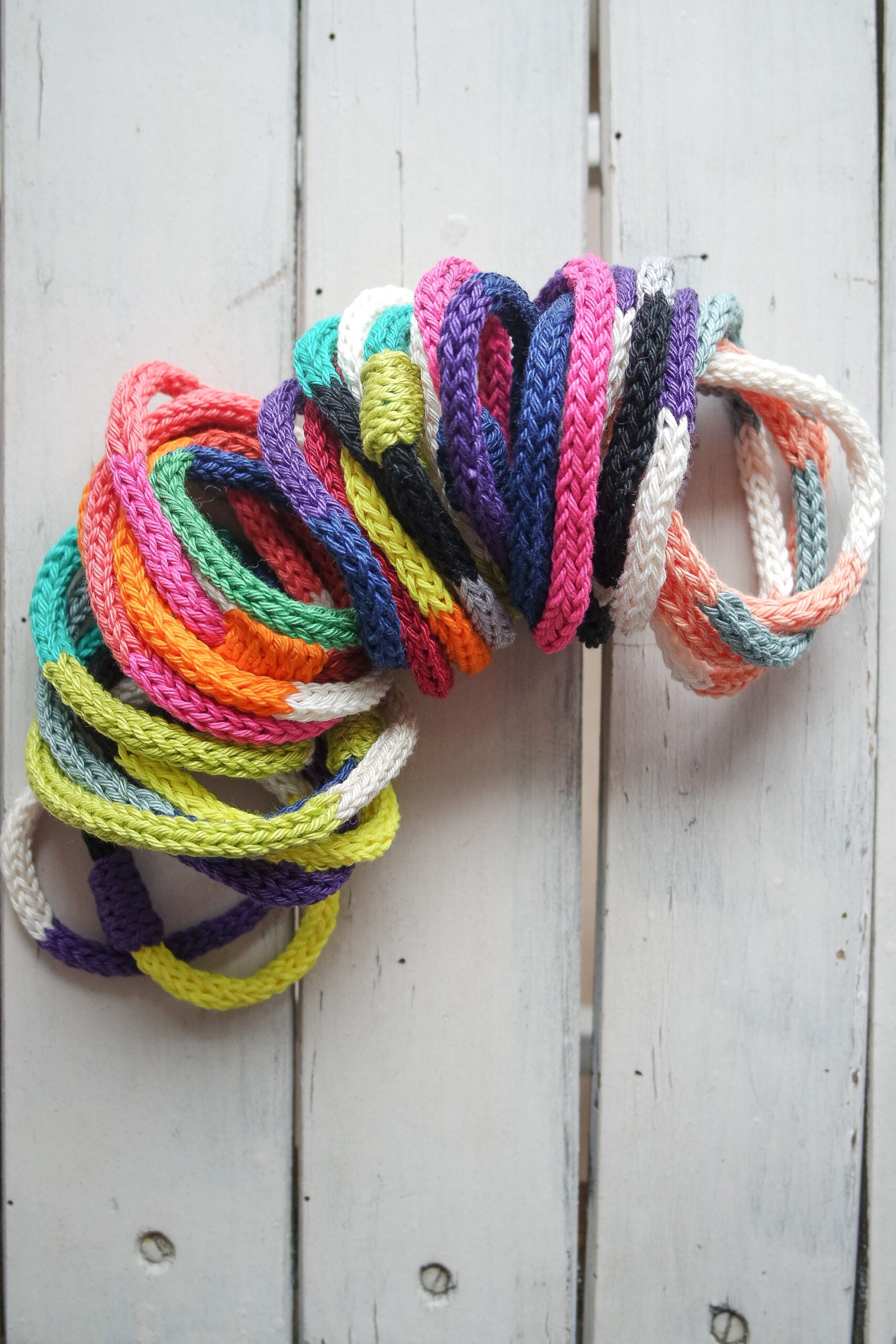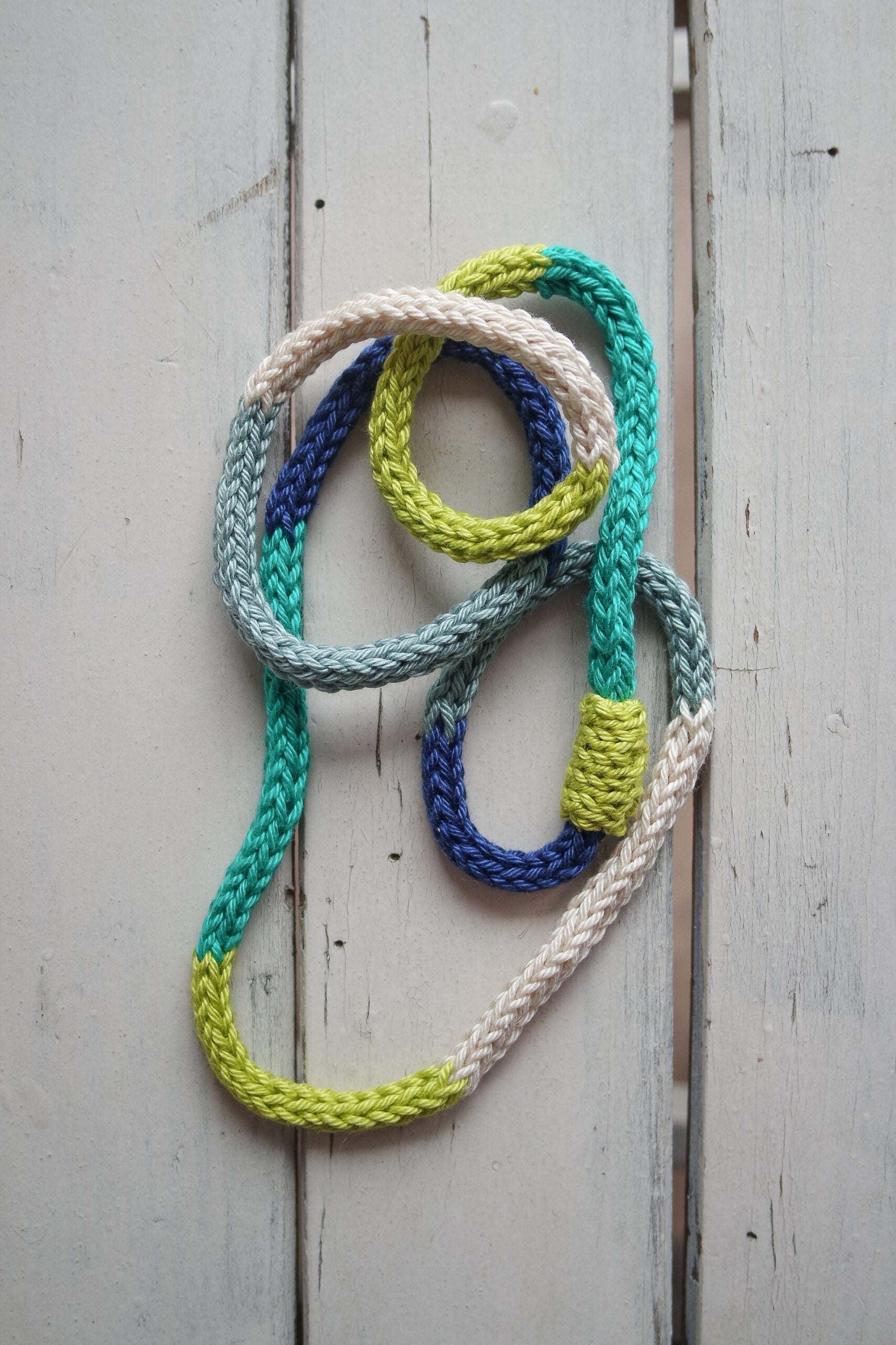 I Cordoncini sono realizzati interamente a mano utilizzando la tecnica della maglia e posso essere utilizzati sia come collana che come braccialetto.