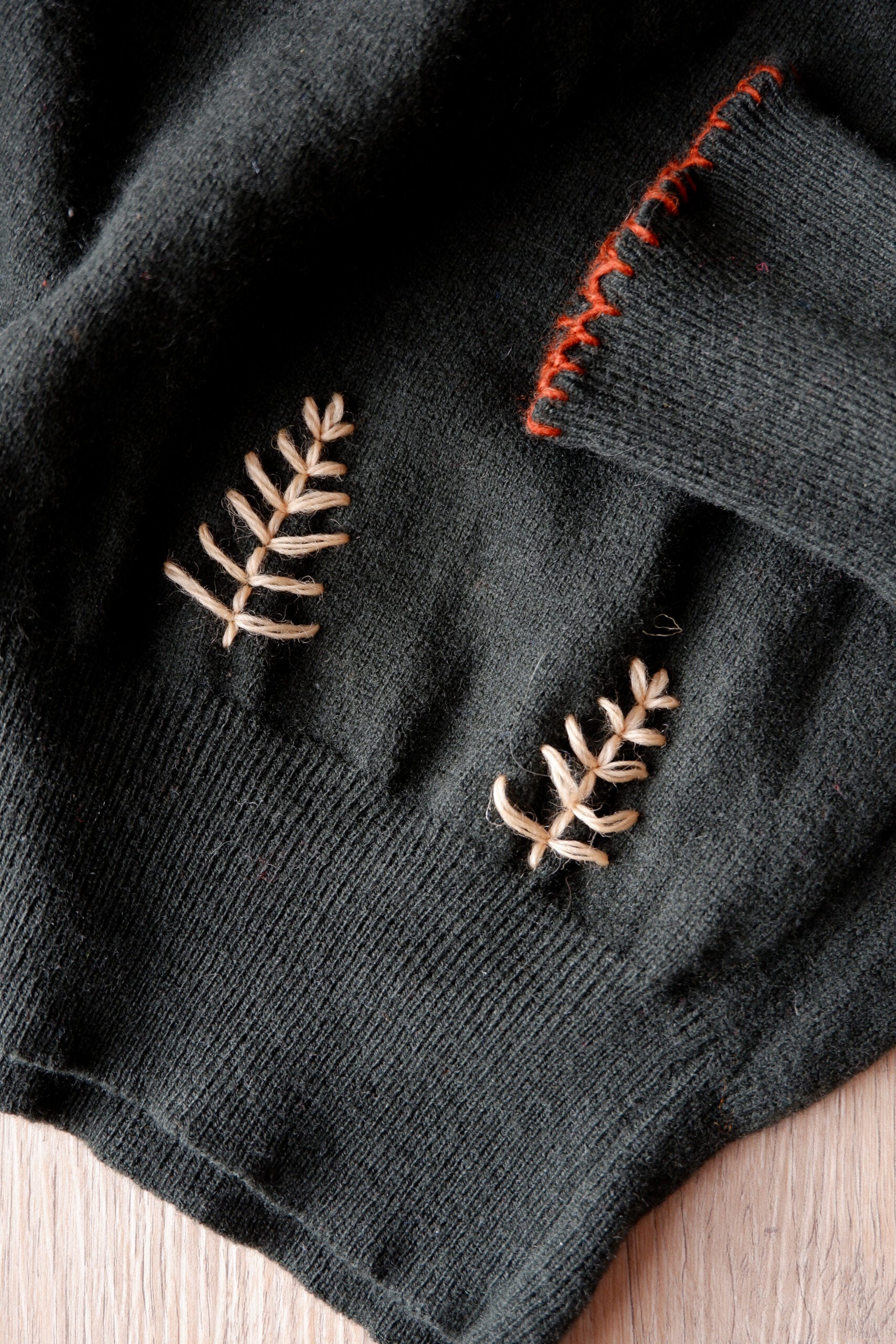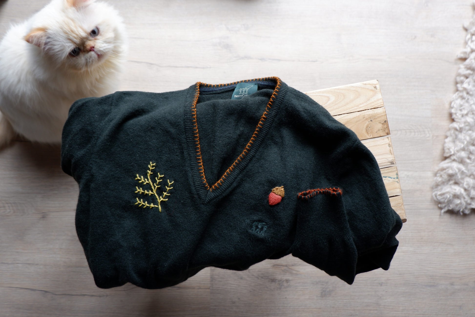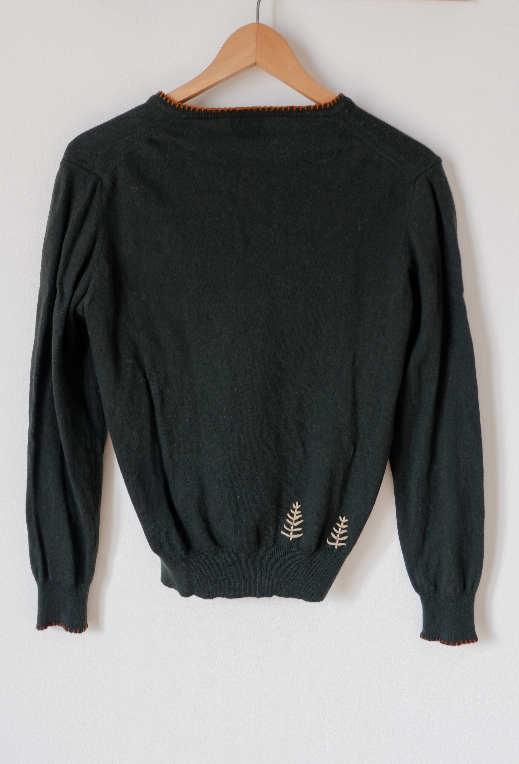 Maglione Foresta fa parte della mia collezione di capi di upcycling, cioè quei capi di seconda mano a cui ho voluto dare una nuova vita con il ricamo.