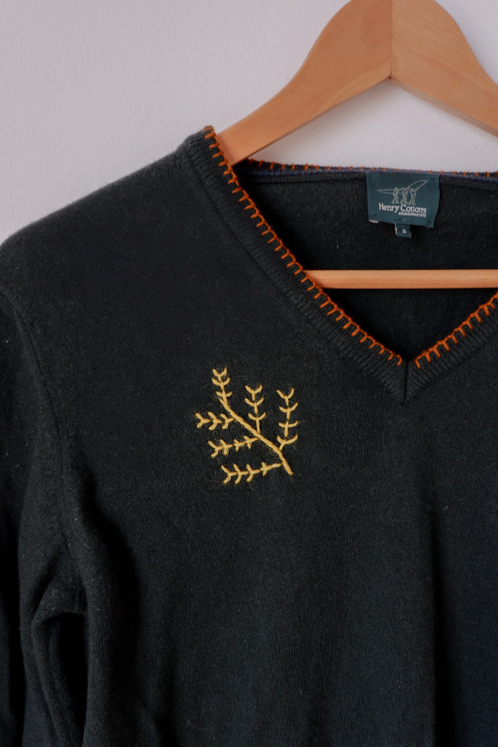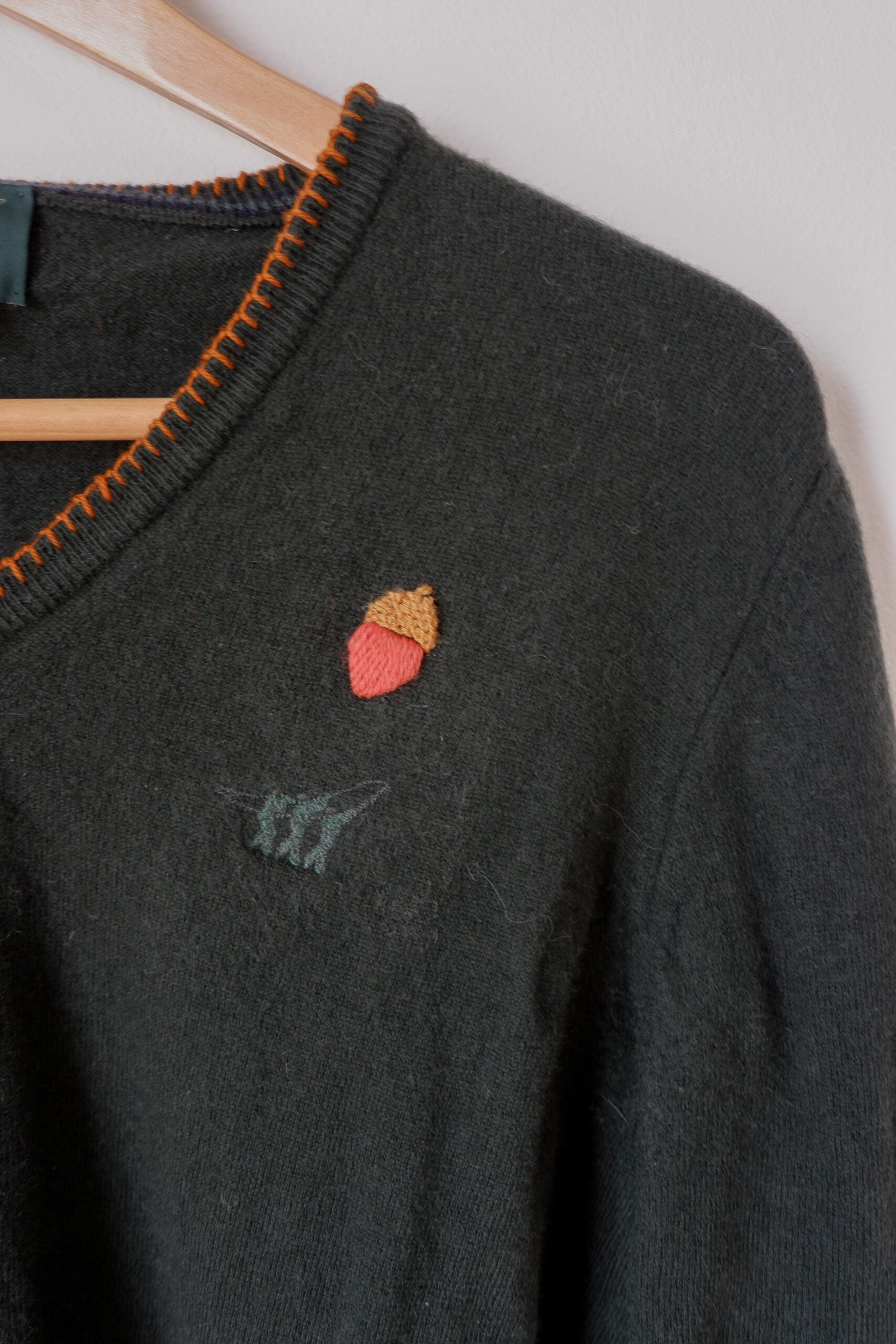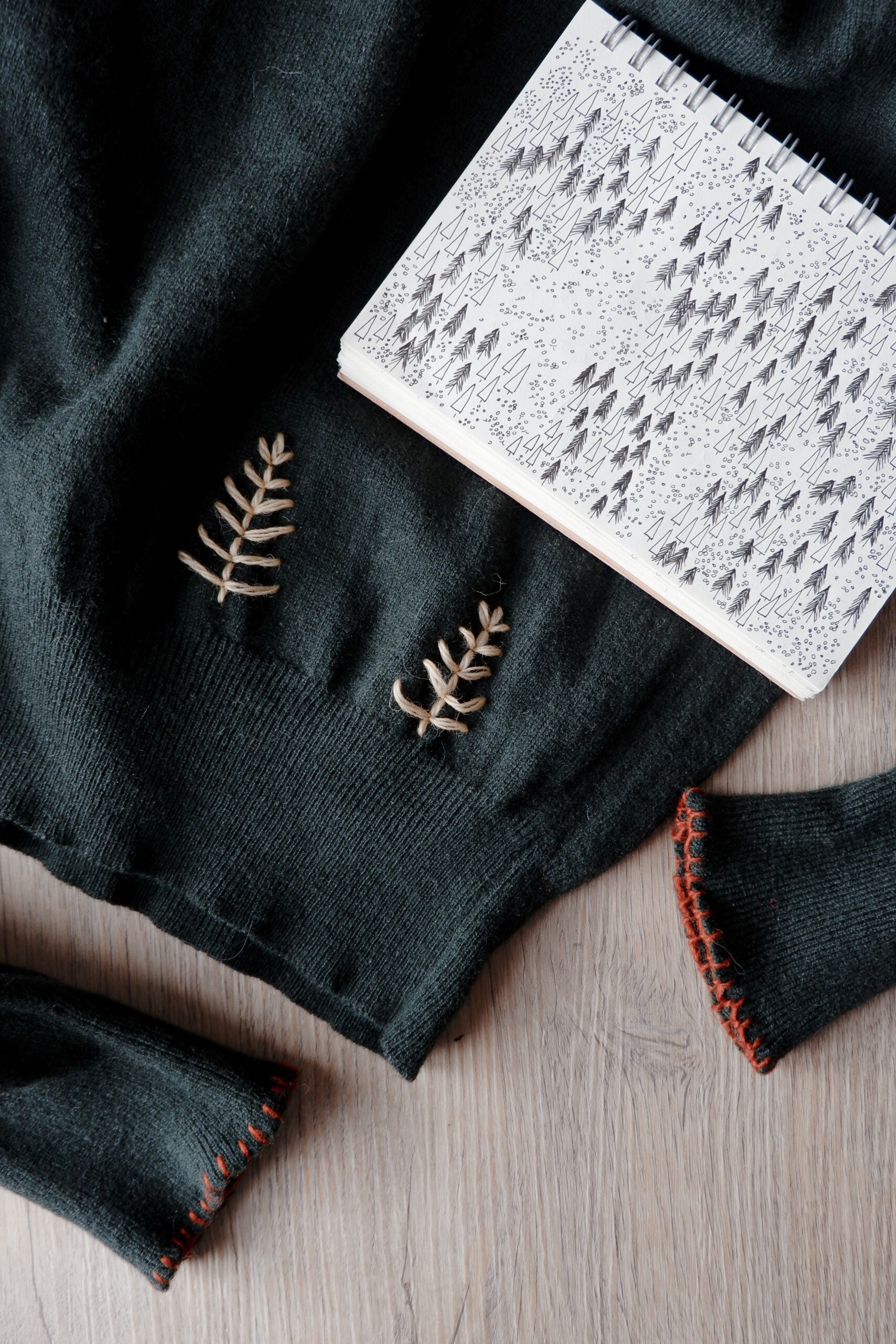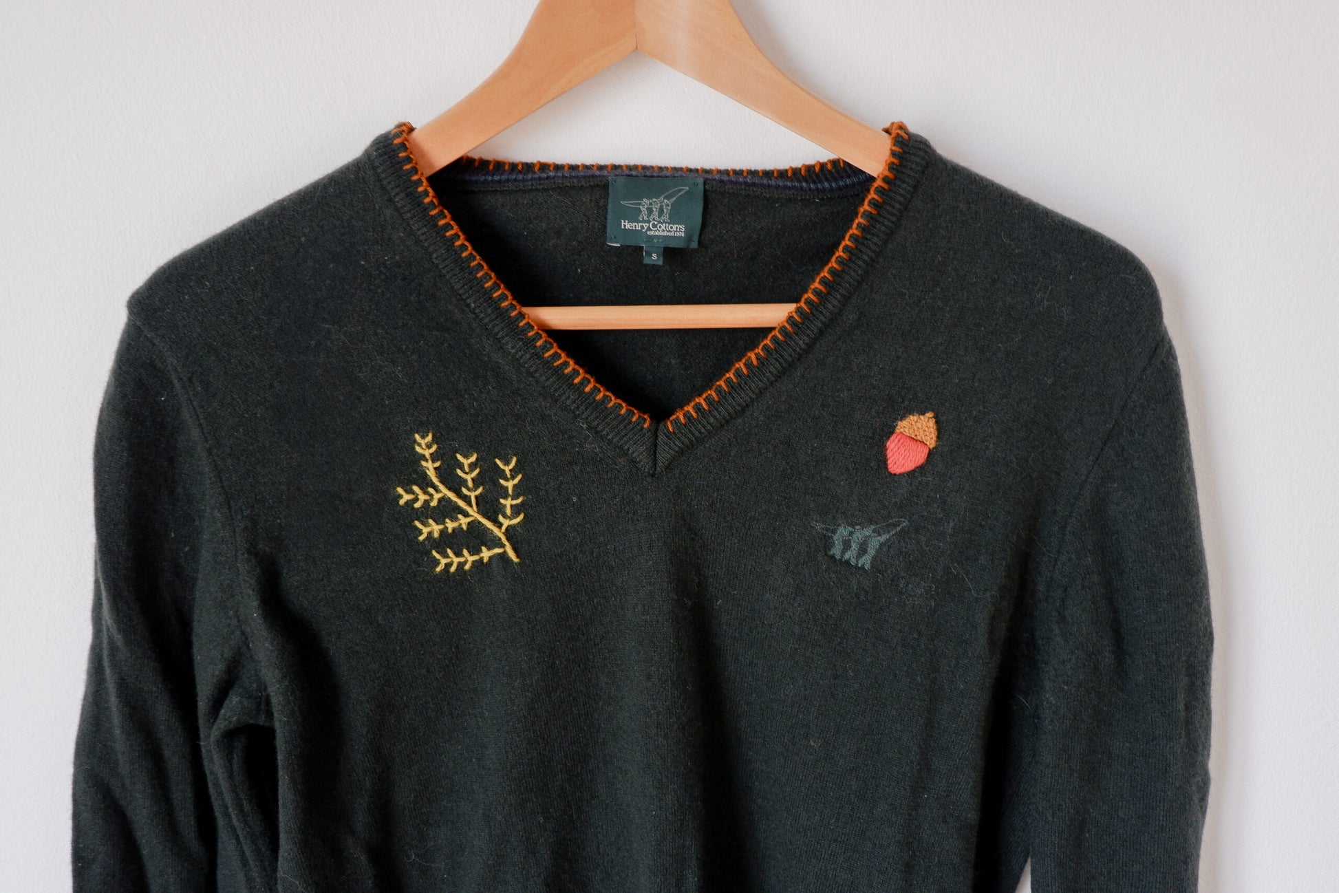 Maglione Foresta fa parte della mia collezione di capi di upcycling, cioè quei capi di seconda mano a cui ho voluto dare una nuova vita con il ricamo.