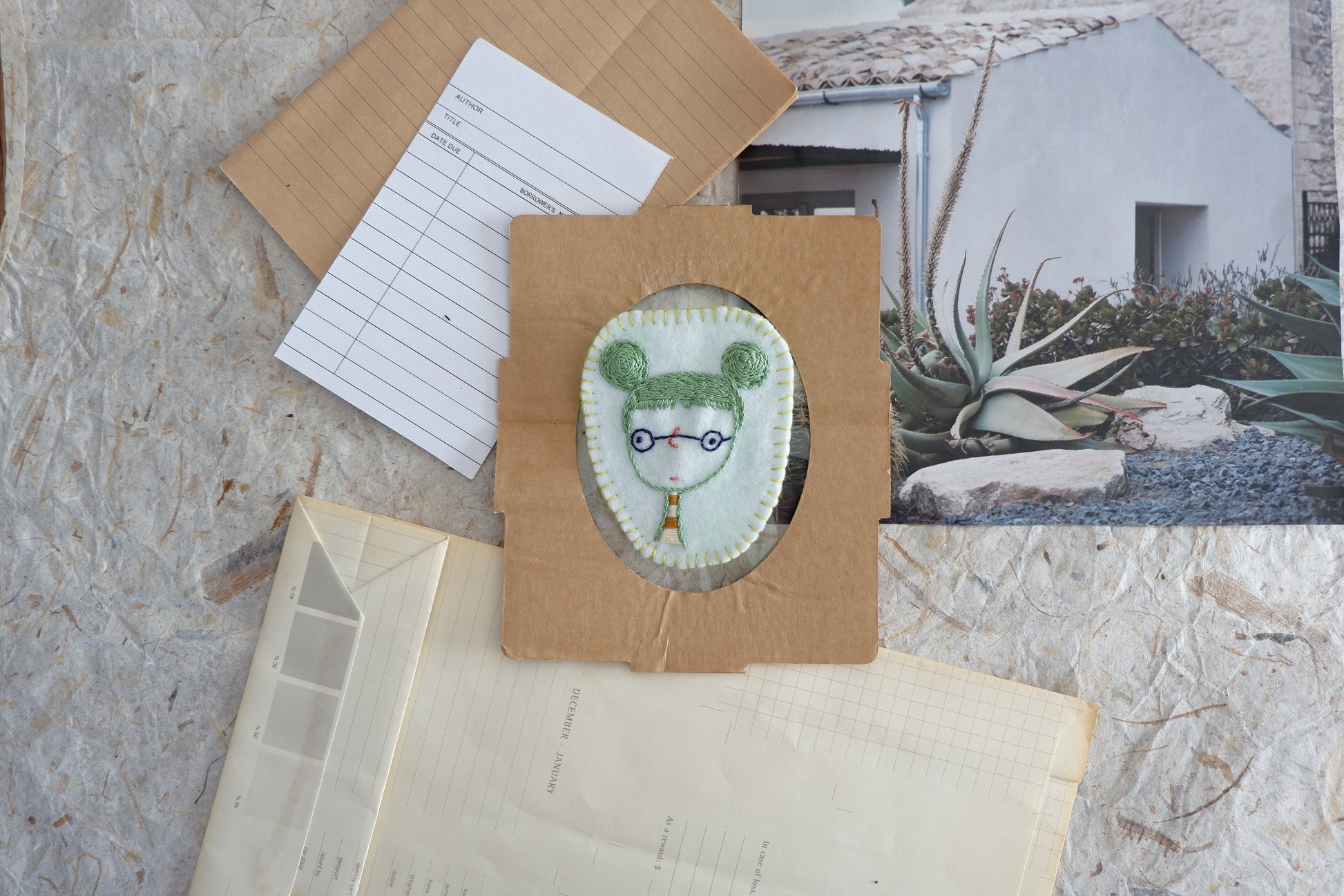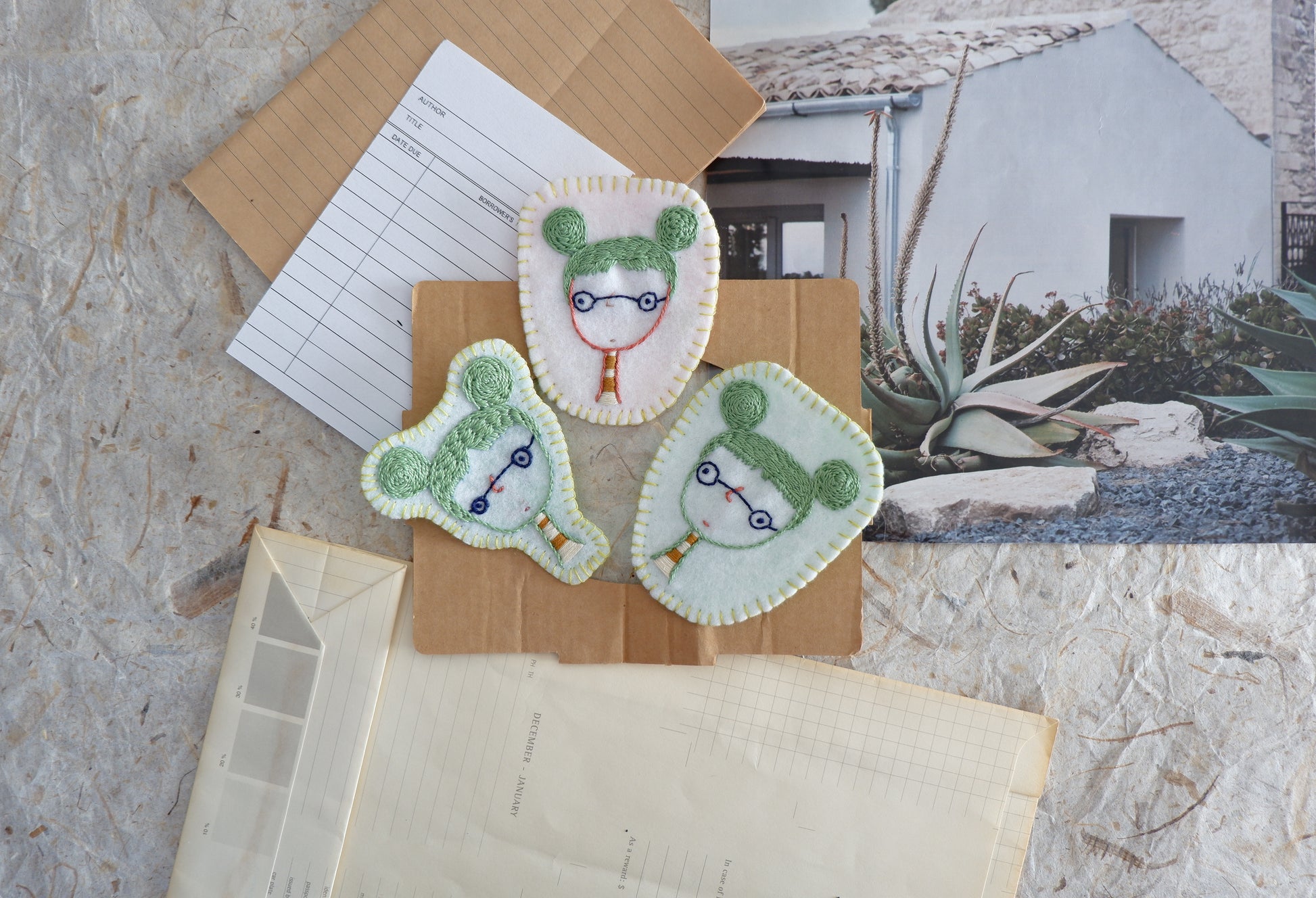 filo 100% cotone su base pannolenci, spilla in metallo