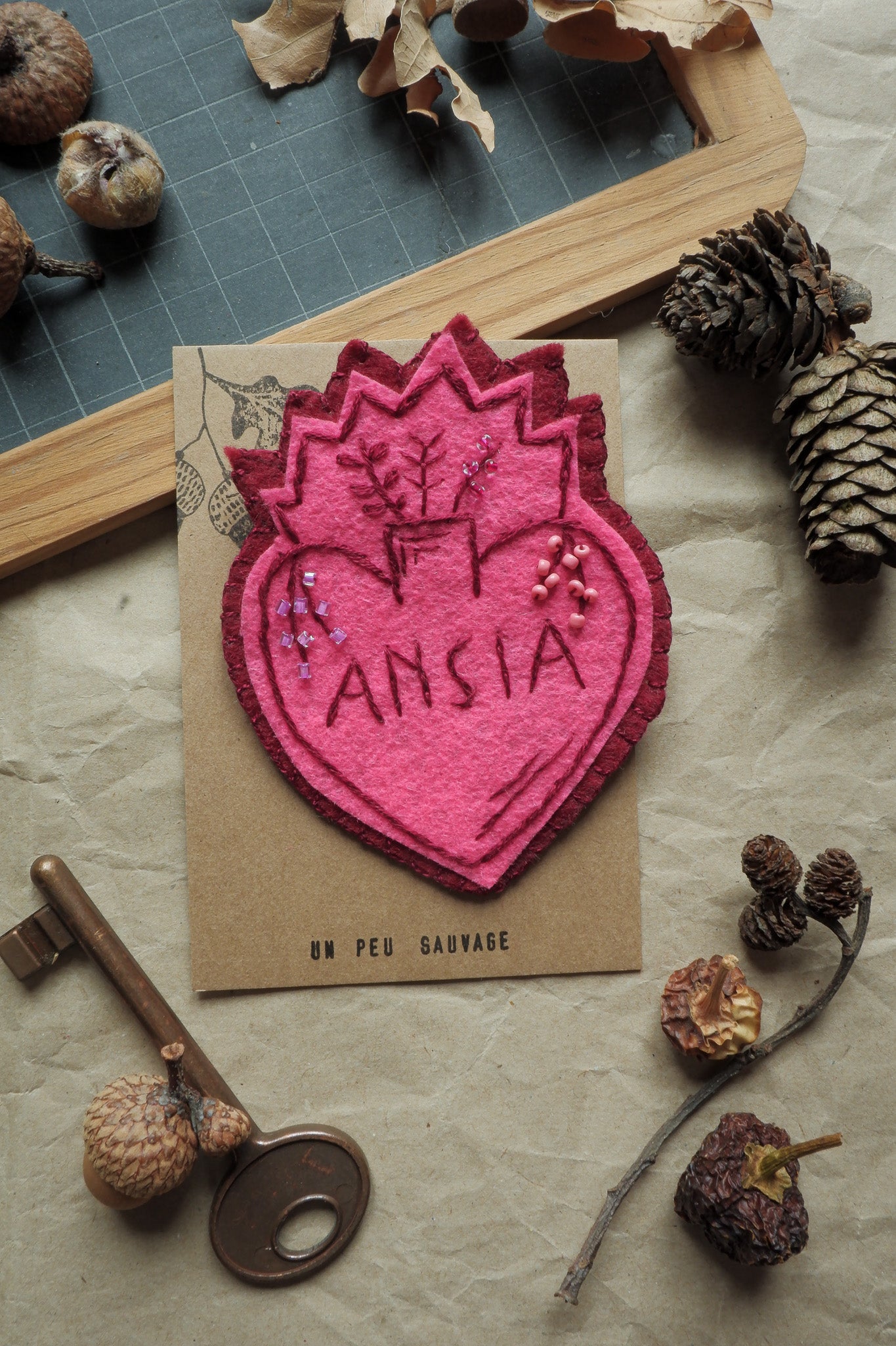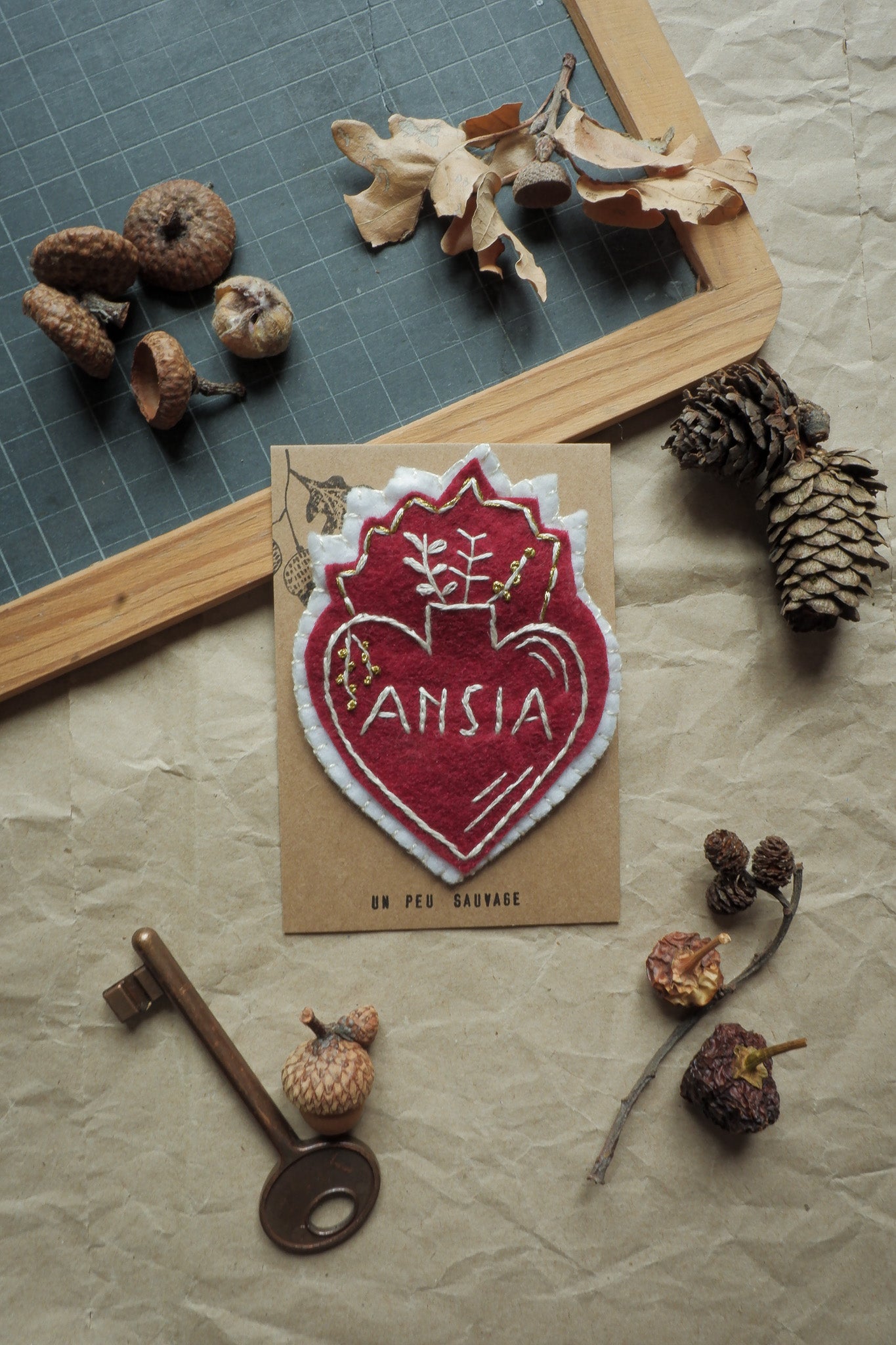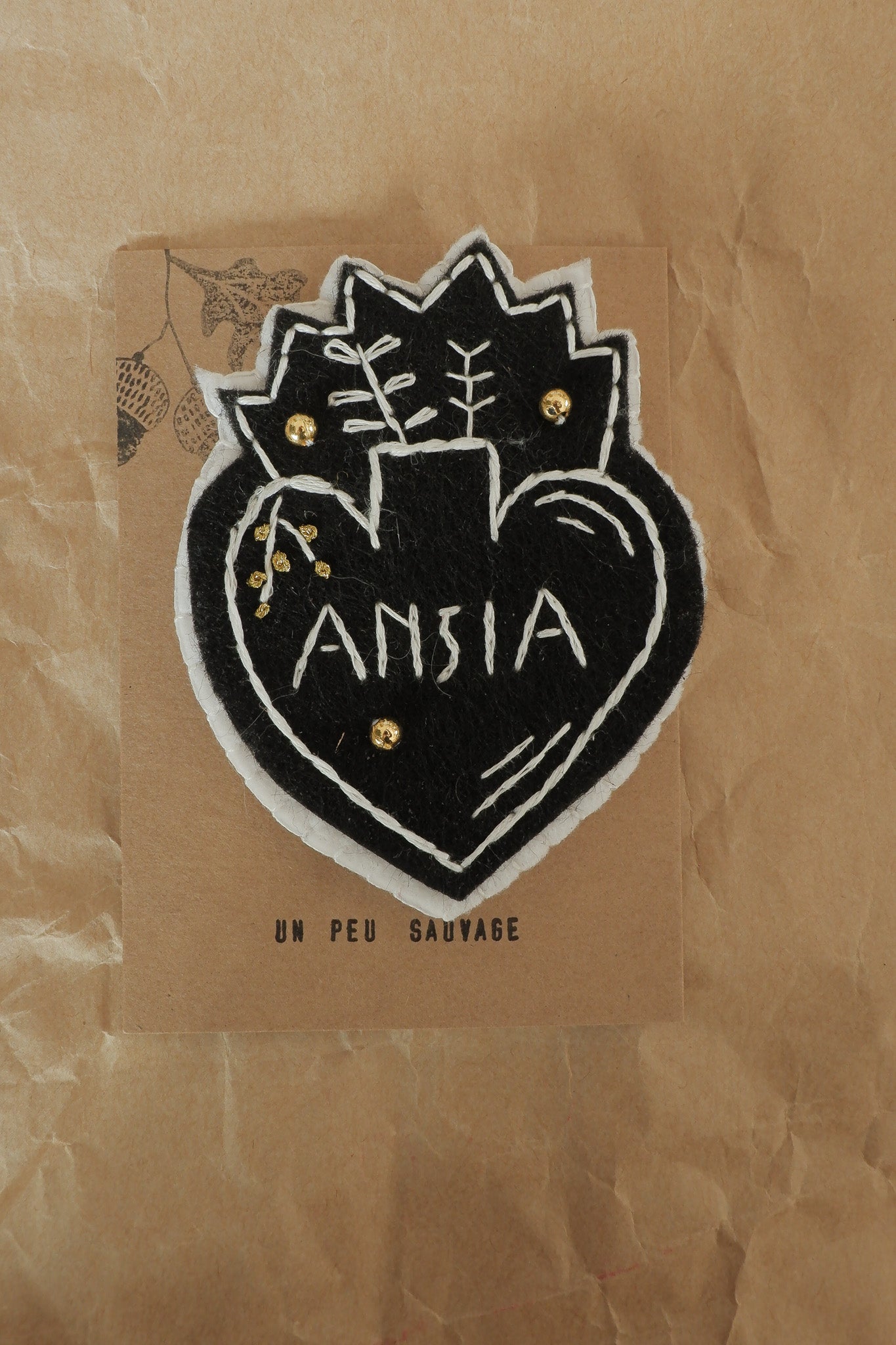 Spilla ansia cuore sacro interamente ricamata a mano da un mio disegno originale.