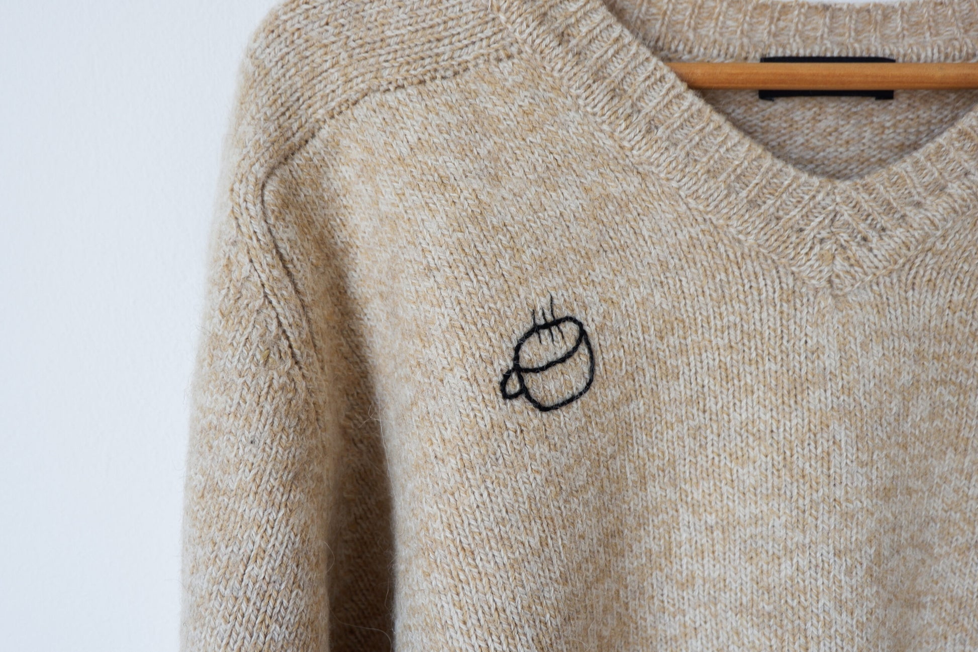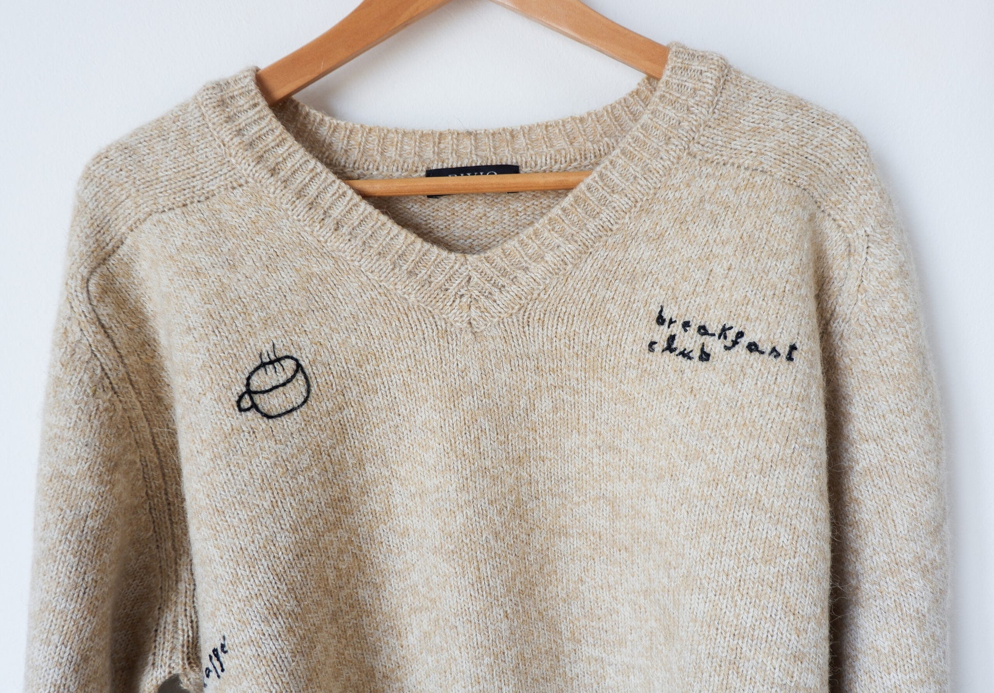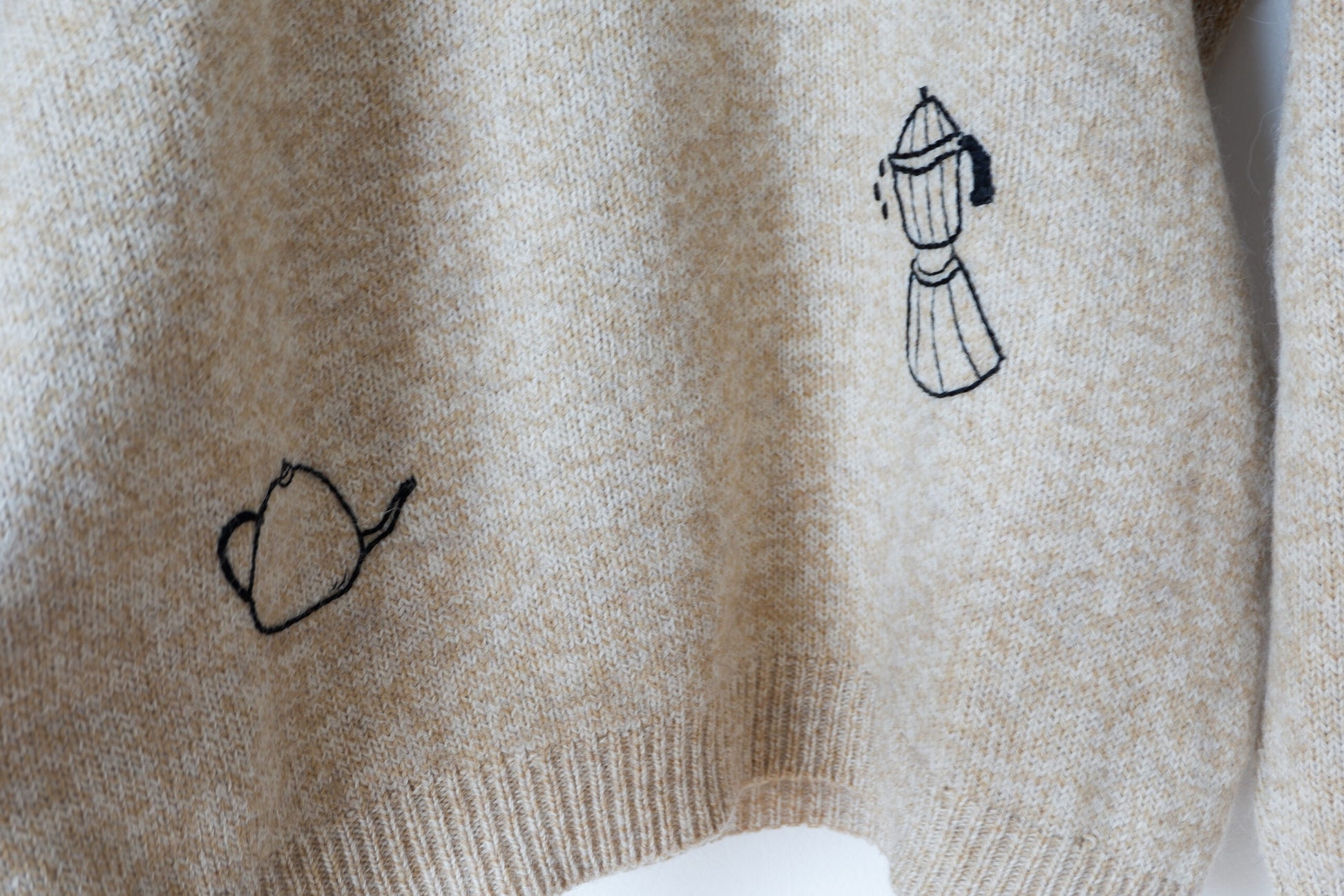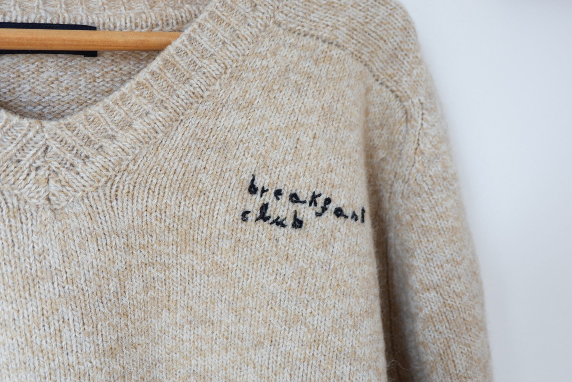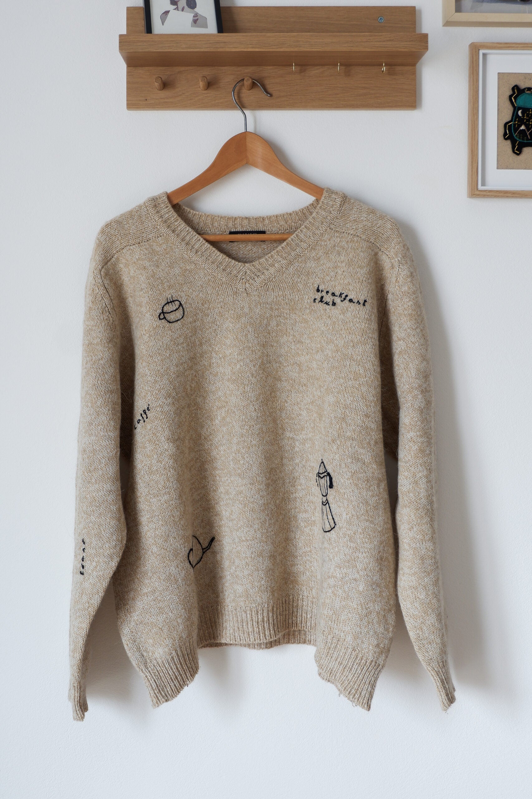 The Breakfast Sweater (il maglione colazione) fa parte della mia collezione di capi di upcycling, cioè quei capi di seconda mano a cui ho voluto dare una nuova vita con il ricamo. I ricami sono di diversi temi e anche i materiali cambiano a seconda del materiale su cui sto lavorando, si va dalla lana al cotone. Ogni capo di questa collezione è unico.