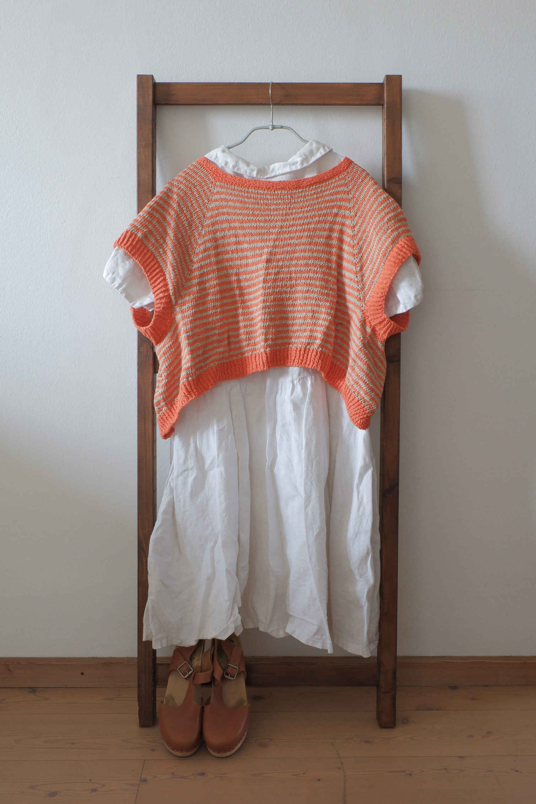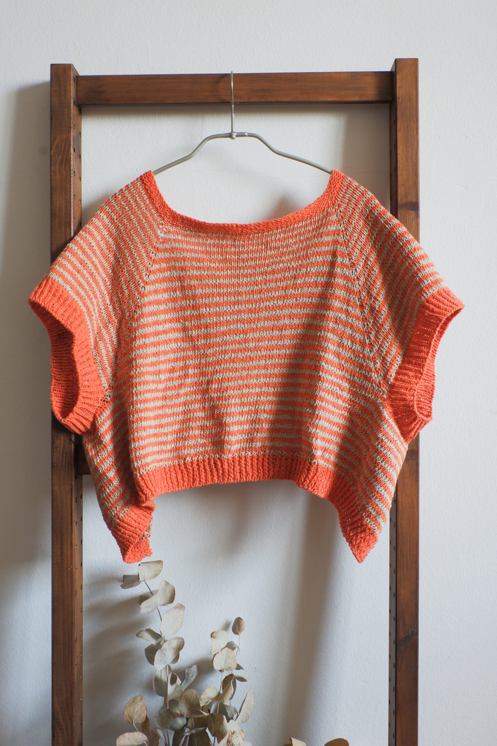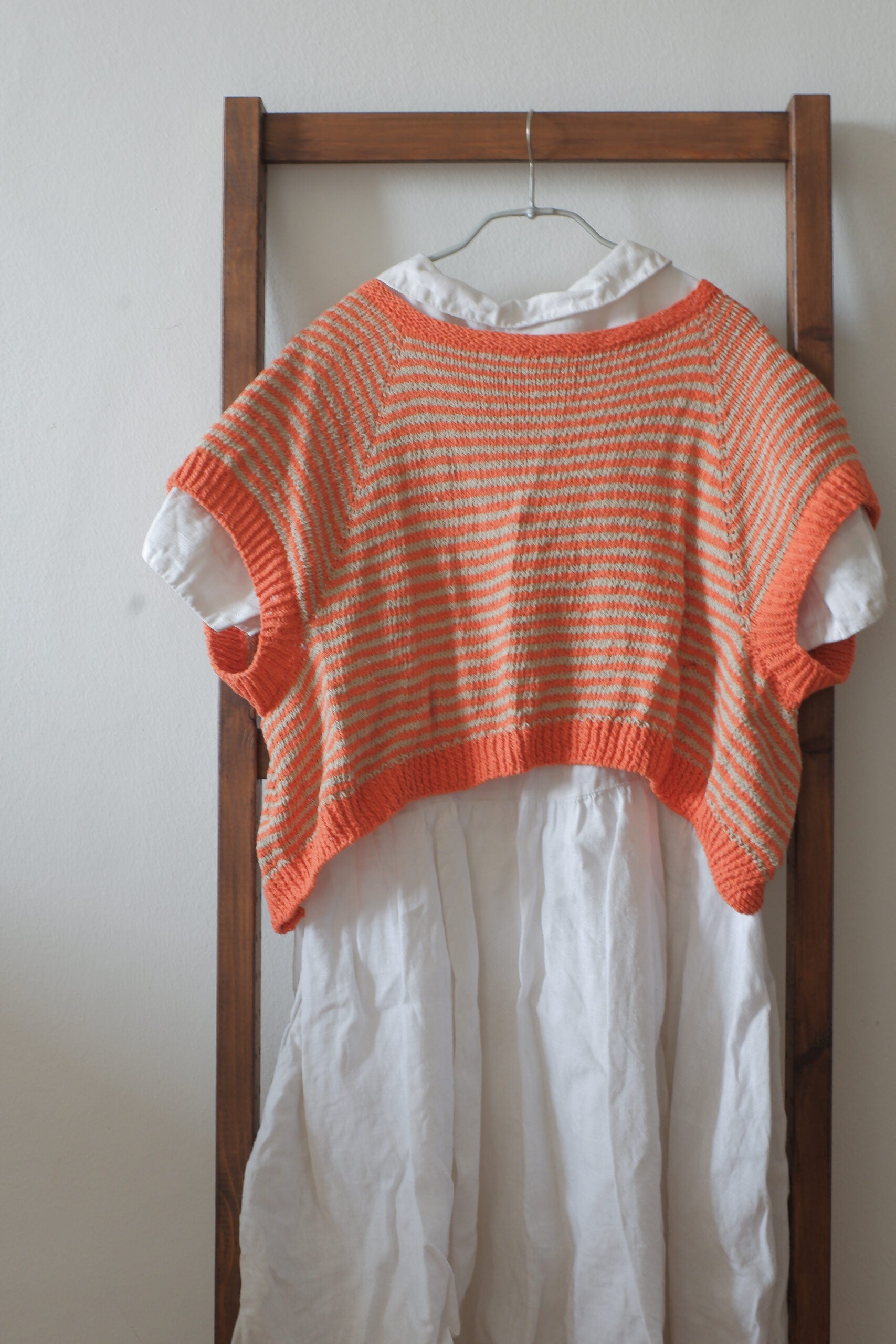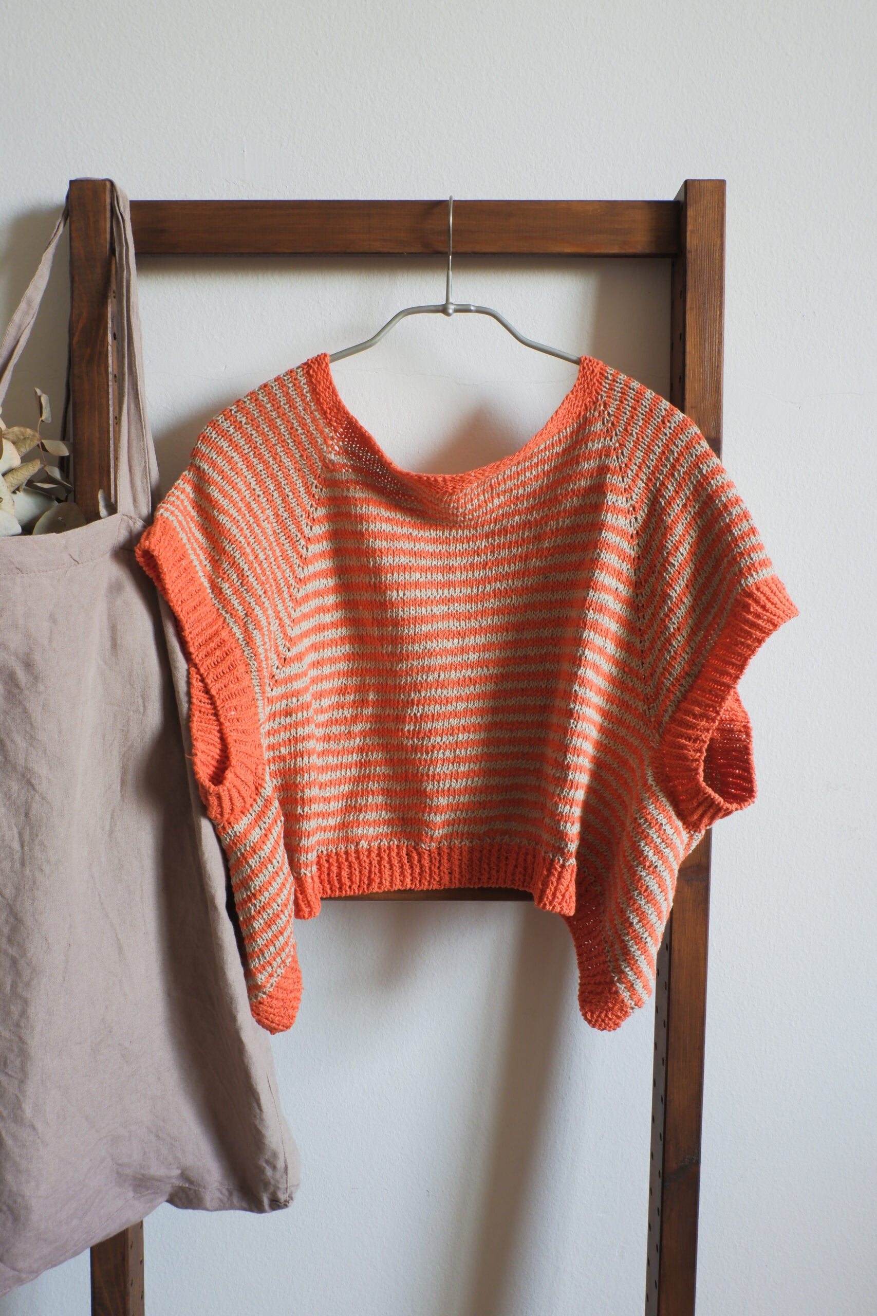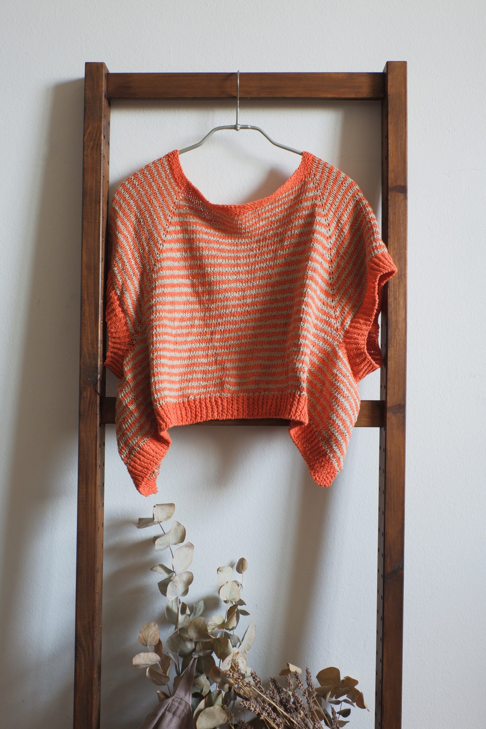 ↟ Materiali: filato di cotone denim riciclato nei colori che mi ricordano l'estate: écru e arancione.